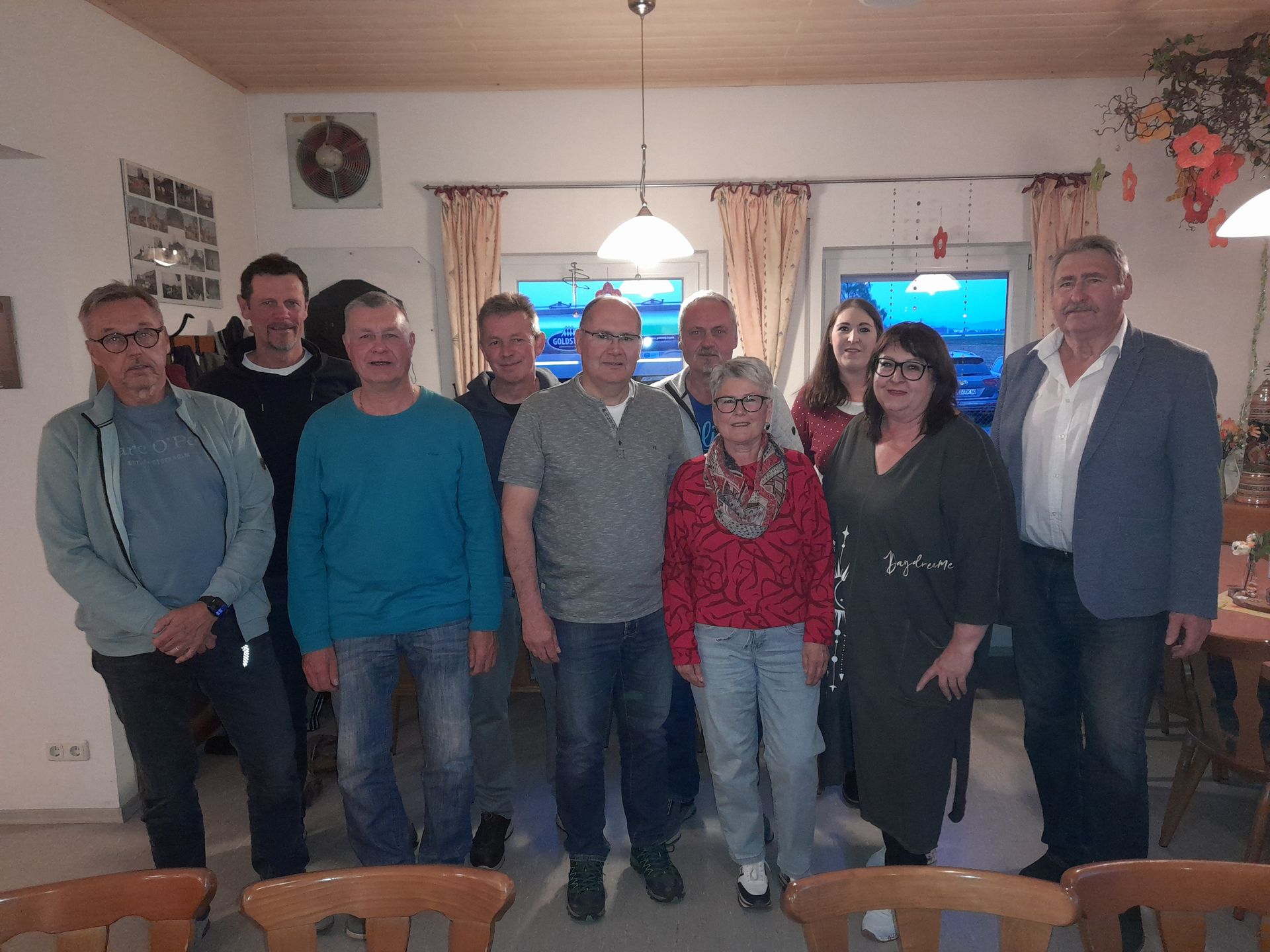 Von links die Beisitzer Herbert Penn, Hubert Weber, Detlev Jeske, Wilhelm Niedergesäß, Herrnwart und zweiter Vorsitzender Gerhard Pommer, Beisitzer Günther Kraus, Kassenprüferin Lieselotte Kraus, Kassierin Steffi Jeske Rösch, Schriftführerin Rita Rösch und Vorsitzender Franz Rösch.